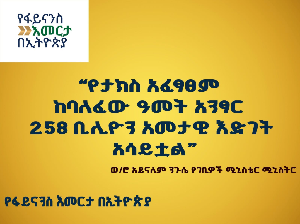 “የታክስ አፈፃፀም ከባለፈው ዓመት አንፃር 258 ቢሊዮን አመታዊ እድገት አሳይቷል”
