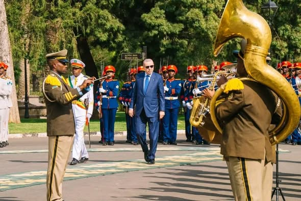 ጠቅላይ ሚኒስትር ዐቢይ አሕመድ (ዶ/ር) የቱርክዬ ሪፐበሊክ ፕሬዝዳንት የሆኑትን ረጀብ ጣይፕ ኤርዶጋን በብሔራዊ ቤተ-መንግሥት ይፋዊ አቀባበል አድርገውላቸዋል፡፡