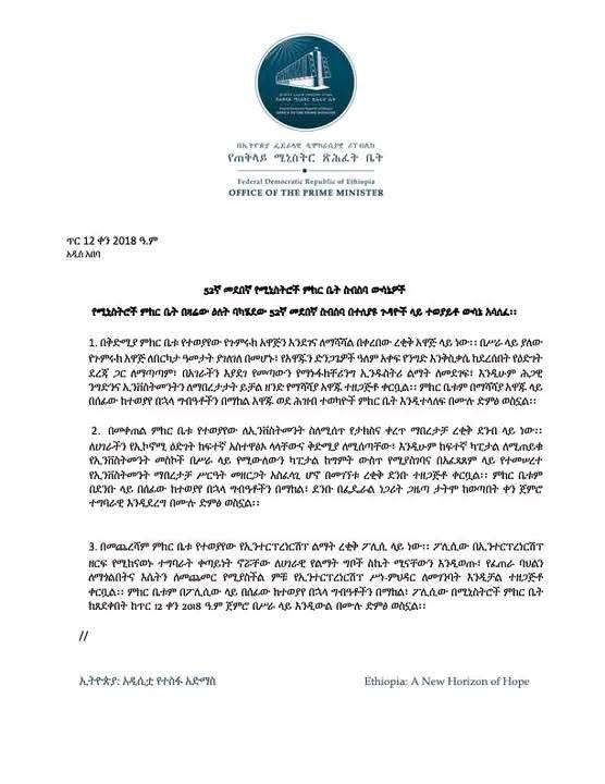 52ኛ መደበኛ የሚኒስትሮች ምክር ቤት ስብሰባ ውሳኔዎች