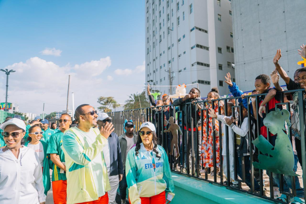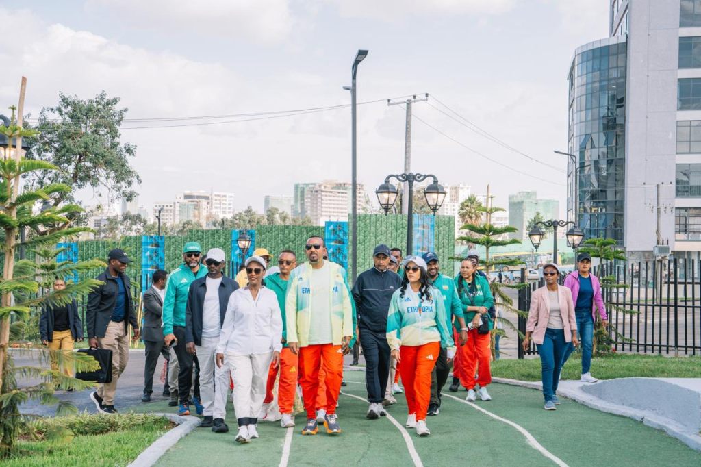 Prime Minister Abiy Ahmed and First Lady Zinash Tayachew officially inaugurated the Addis Sports Park today, marking a significant milestone in the city’s corridor development and urban renewal journey. Spanning 5.7 hectares, this comprehensive project integrates elite sports infrastructure including an Olympic-standard swimming pool, professional-grade football, basketball, handball, and tennis courts, an 800-meter running track, and modern indoor and outdoor gyms with essential community services. The development is designed to be inclusive of all age groups, featuring dedicated children’s playgrounds, age-appropriate swimming pools, sand-based football and handball pitches, and a wellness Centre. A centerpiece of the park is the dedicated honorary statues of 15 Ethiopian Olympic gold medalists, immortalizing their legacy to inspire future generations of athletes. Beyond its athletic facilities, the project encompasses a 3,000-capacity plaza with restaurants and cafes, a two-level basement parking facility for 300 vehicles, and 105 commercial shops specifically built for community members relocated during the development process.